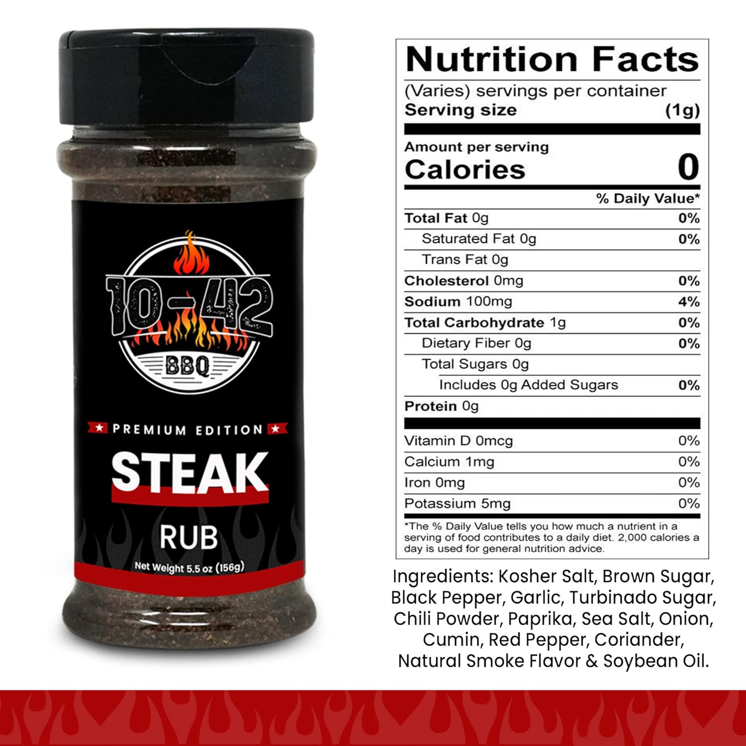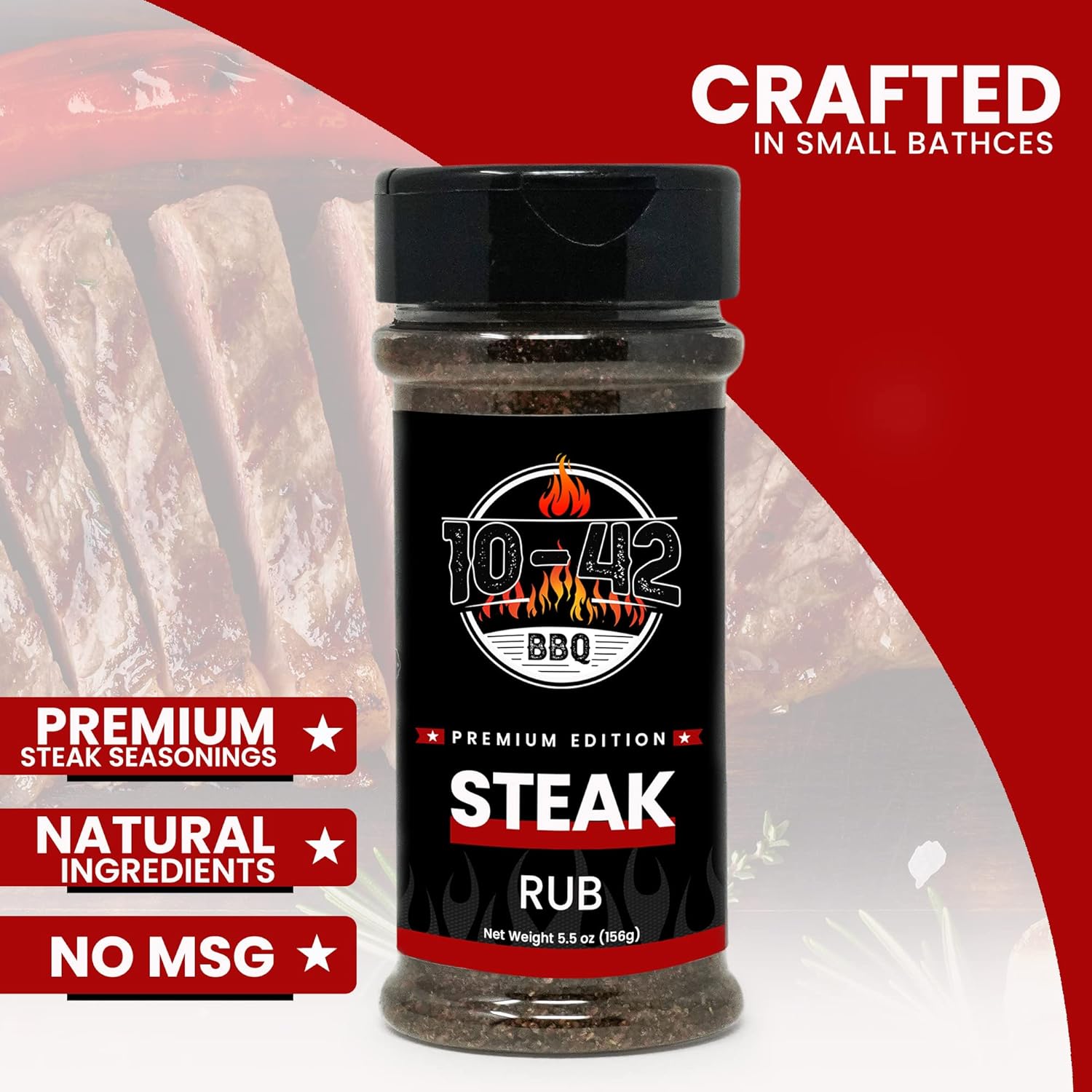 - Premium Edition - 10-42 BBQ Steak Rub is the Best Steak Seasoning in Town. Season your Sirloin, Tomahawk, Ribeye or Porkchop. Premium taste like it’s made from your favorite fancy steakhouse. Using the best steak spices and seasonings to create your special dishes in the comfort of your own home.