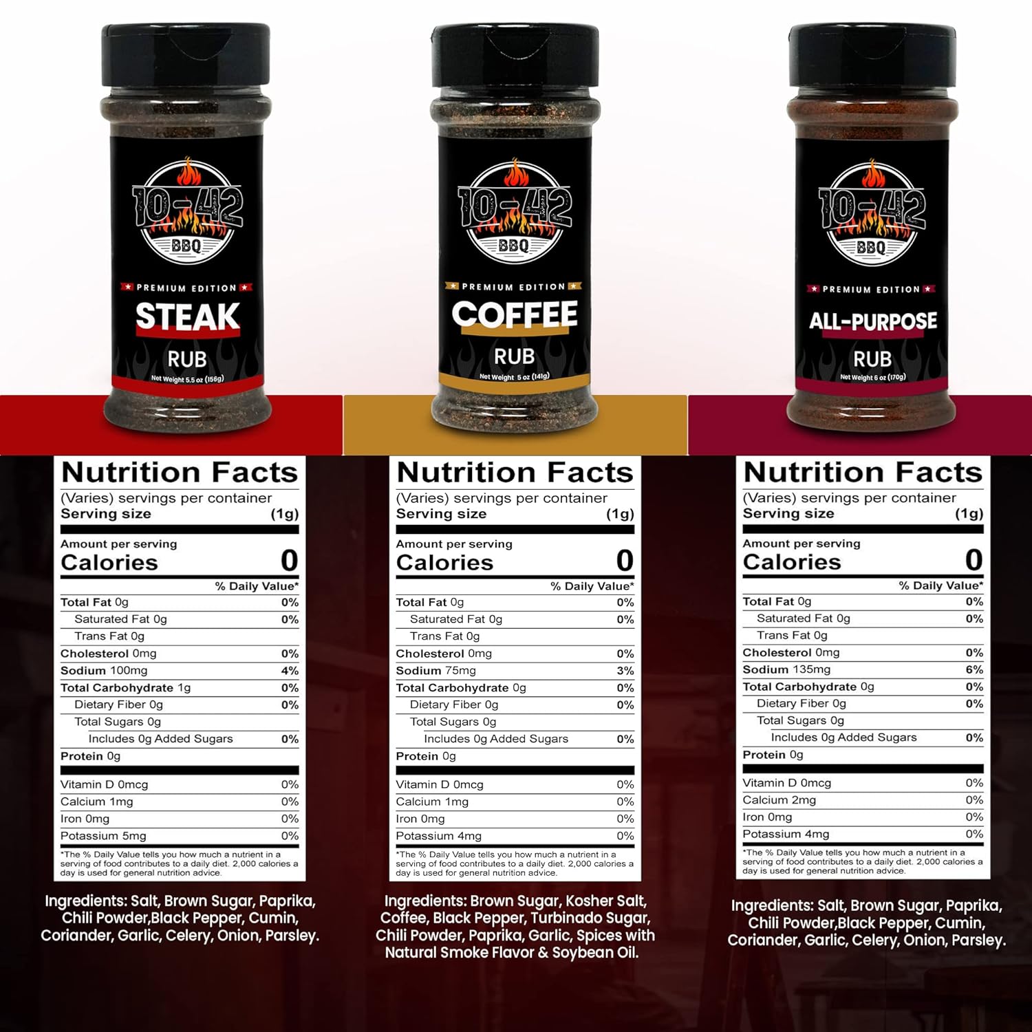 - PREMIUM EDITION - We give you the highly requested BBQ flavors. Our special mix of bbq seasoning All Purpose Seasoning, Steak and Coffee Rubs are sure to dominate any pantry with their bold flavor of herbs, spices & seasonings you'll surely love.